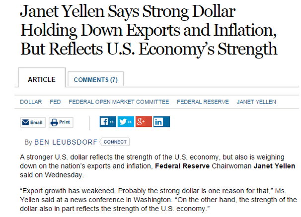 The Fed is perceived by markets as being forced to postpone its first interest rate rise in this cycle. One reason for his is the weaker economic growth in the US, which is partly affected by the trade performance, but the higher dollar also makes US inflation weaker, thus undermining one of the principal justifications for raising.