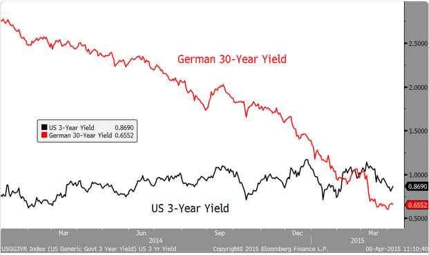 Mario Draghi would never admit it, but his policy – as well as that of the Bank of Japan – is having an increasing impact on the freedom of movement of the US Federal Reserve. Monetary policy divergence is the main driver of lower Euro/USD and increasingly negative bund yields. This is effectively crimping Janet Yellen’s discourse space. An early end to ECB QE would surely make the Fed’s job a lot easier.