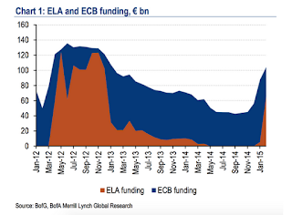 But then there is the other alternative – just allow the momentum of the present impasse to carry Greece straight out of the Euro Area. That would solve the problem of getting a deal, but the cost, when you come to think of EFSF and IMF loans plus ELA would hardly be negligible, not to mention the as yet unquantified geopolitical and contagion effects.