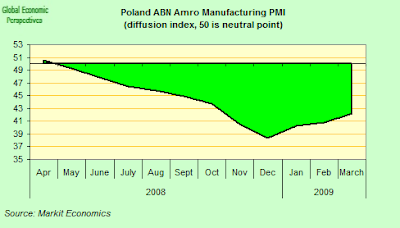The Czech Purchasing Managers’ Index inched up to 34.0 in March from 32.6 in February and from the record low set in January. The Czech decline was also the least extreme in five months, but the first quarter as a whole still pointed to a much steeper rate of decline than the second half of 2008, said Markit, which compiles the PMIs.